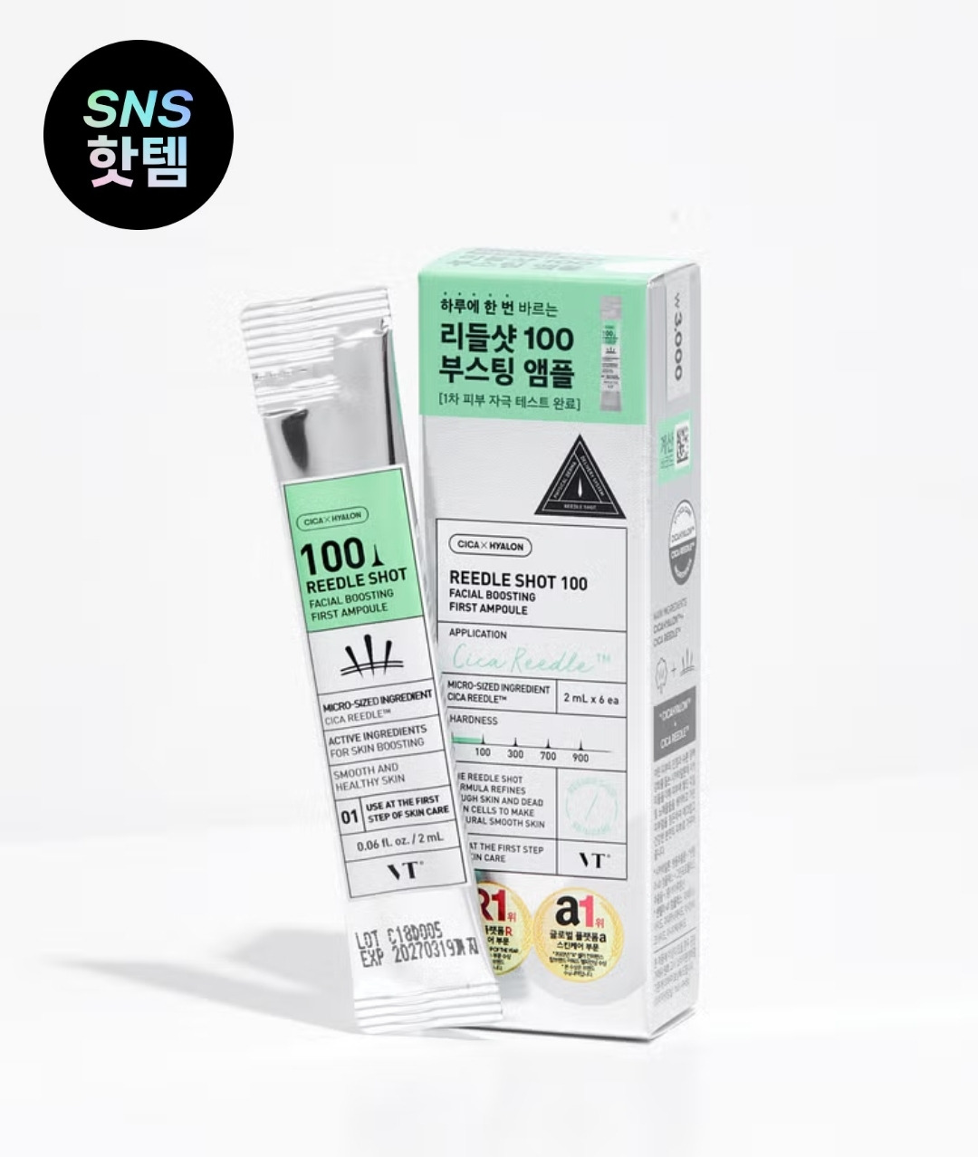 - 특징: 마이크로 니들 기술을 적용하여 화장품의 피부 흡수율을 높인 고기능성 앰플입니다. '홈케어' 트렌드에 부합하는 제품으로, 저렴한 가격에 전문적인 피부 관리가 가능하다는 입소문이 퍼지면서 폭발적인 인기를 끌었습니다. 리들샷 100은 데일리 부스팅용으로, 300은 집중 케어용으로 사용되며 두 제품 모두 판매 순위 상위권을 차지하고 있습니다.