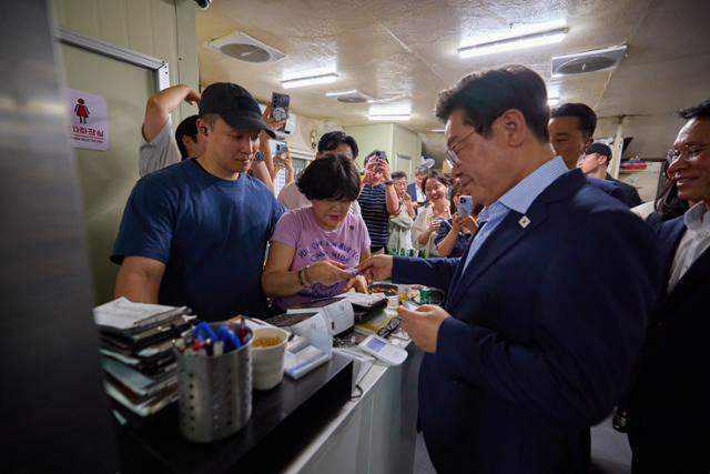 이재명 대통령이 '대통령과 외식합니다' 행사를 통해 민생회복 소비쿠폰 정책의 중요성을 강조하고 있다