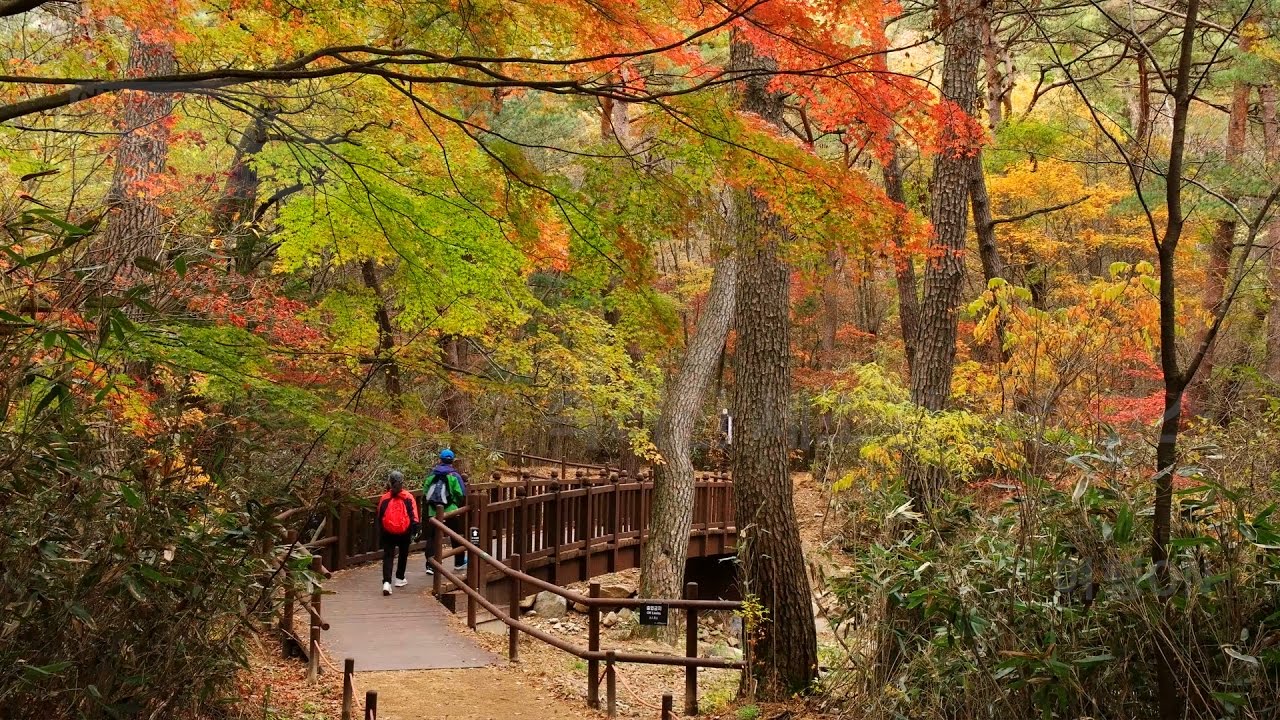 - 코스 특징: 조선 7대 임금 세조가 피부병 요양을 위해 거닐었던 길로, 대부분 평지로 이루어져 있어 남녀노소 누구나 편안하게 걸을 수 있습니다. 유모차나 휠체어 접근도 가능할 만큼 잘 정비되어 있습니다. 울창한 소나무 숲과 계곡을 따라 걸으며 가을의 정취를 느끼기에 더할 나위 없이 좋은 길입니다.