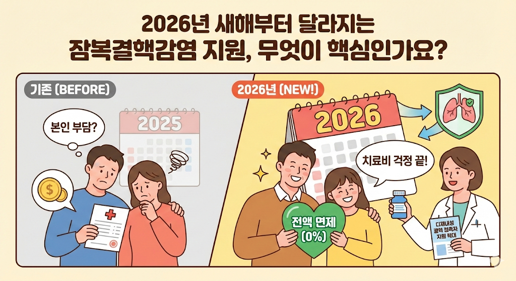 2026년부터 확대되는 잠복결핵감염 치료비 지원 사업은 국민의 생명과 안전을 지키는 든든한 울타리가 될 것입니다.
