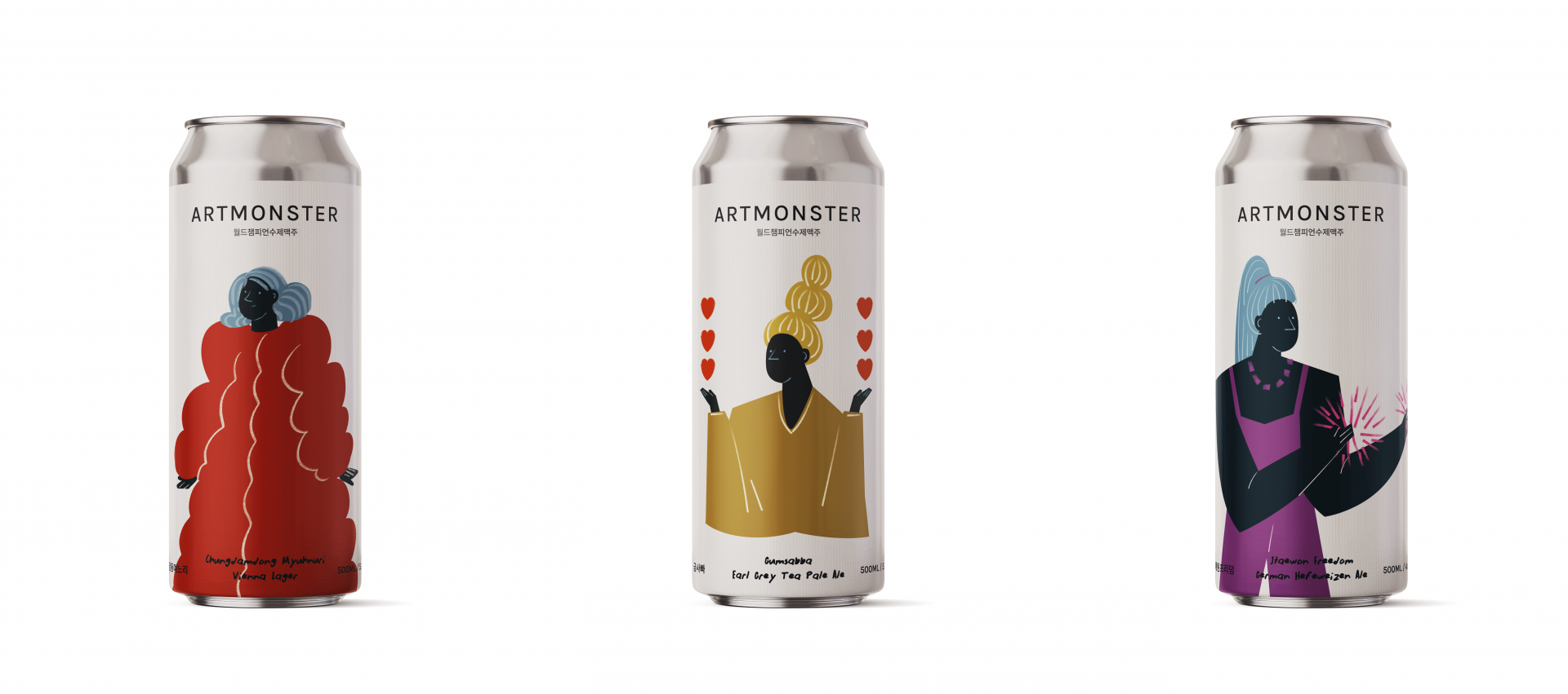 - 시그니처 맥주와 수상 경력: 아트몬스터의 대표작 중 하나인 '아트 스위트 포터(사랑범벅)'는 땅콩버터 풍미가 특징인 흑맥주로, 2024년 월드비어컵 스위트 스타우트 부문에서 은메달을 수상했으며, 2018년 브뤼셀 비어 챌린지 대상 수상을 시작으로 이미 29개 이상의 국제 대회에서 그 맛을 인정받았다. 이 외에도 헤이지 IPA 스타일의 '넘사벽', 밀맥주 '첫사랑의 향기', 필스너 라거 '운짱', 비엔나 라거 '청담동며느리' 등 정규 라인업에 포함된 모든 맥주가 세계 유수의 대회에서 메달을 획득한 바 있으며, 이들 중 다수는 각각 25관왕 이상을 차지하기도 했다. 아트몬스터는 설립 이후 국내외 유명 주류 대회에서 총 300회 이상 수상하는 기염을 토했다.